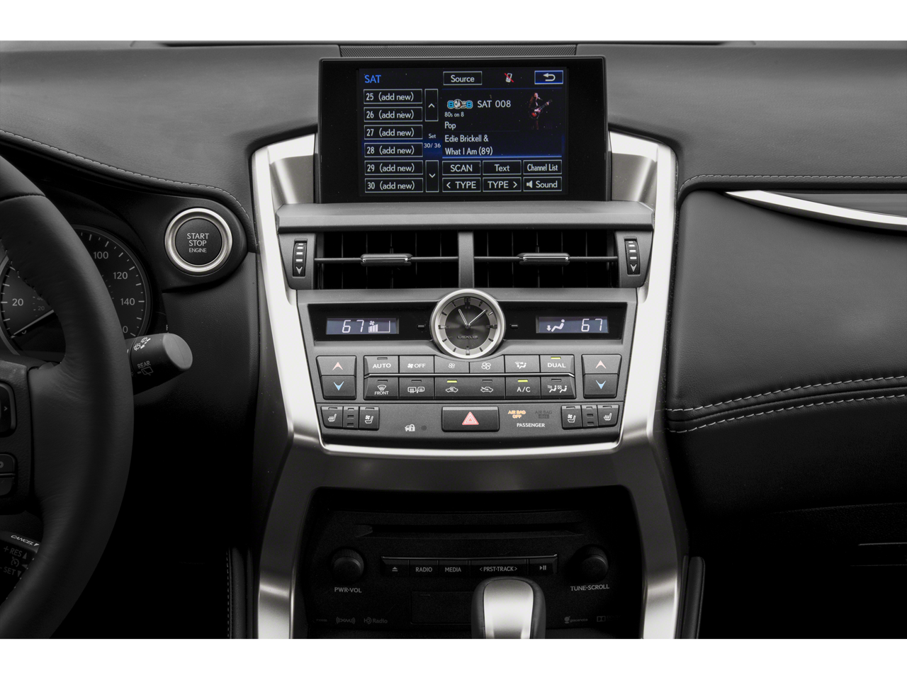 - Radio: AM/FM/CD Lexus Display Audio -inc: 8 speakers, Bluetooth® audio streaming from compatible devices and hands free, full digital power amplifier (class D), integrated SiriusXM Satellite Radio receiver (90-day All-Access trial subscription included), USB/iPod control, home screen can be divided into 1-3 sections (customizable - HVAC, audio, navigation), 7" screen, 3D maps, 3D buildings, my traffic routes, speed limit display on road travelled, ETA calculation improved, traffic detour preview, predictive traffic, MID data sharing, voice recognition, one-shot address entry, steering wheel control of onboard/offboard voice recognition, voice recognition guidance level, hint screens, Cache Radio w/ability to pause live AM/FM/HD Radio, hybrid data service, traffic and weather data provided via HD Radio (free while in HD Radio range), basic traffic maps, and weather forecast