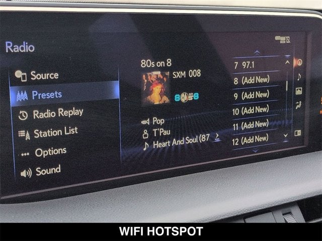 - Radio: Lexus Premium Sound System w/10 Speakers -inc: 7-inch Thin Film Transistor (TFT) LCD instrument panel display, aux and 3 USB (1 front, 2 rear) audio input plugs, Bluetooth® streaming audio, hands free phone and automatic phonebook download capabilities, CD player, HD Radio w/iTunes tagging (subscription free traffic and weather updates), integrated SiriusXM satellite radio receiver (complimentary 90-day trial subscription), remote touch interface controller w/back button, Lexus multimedia system w/8-inch color display and Scout GPS Link w/MapStream and TurnStream (complimentary for up to the first 3 years of ownership), Lexus Enform App Suite 2.0 Amazon Alexa compatible, Lexus Enform Wi-Fi (complimentary 4GB one-year trial included), Lexus Enform Remote app and Amazon Alexa compatibility (complimentary during first year of ownership), home screen divided into three customizable sections (HVAC, audio, traffic), voice command, Siri Eyes Free and Google voice control