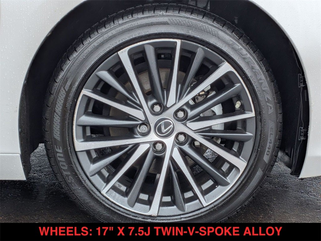 ES 250, 4D Sedan, I4, 8-Speed Automatic, AWD, Eminent White Pearl, Black w/Black Open Pore w/Perforated Leather Seat Trim, 10 Speakers, 10-Way Power Adjustable Front Seats, Acoustic Side Glass, Apple CarPlay/Android Auto, Auto High-beam Headlights, Auto tilt-away steering wheel, Auto-dimming door mirrors, Auto-dimming Rear-View mirror, Automatic temperature control, Brake assist, Electrochromic Rear-View Mirror, Electronic Stability Control, Exterior Parking Camera Rear, Front & Rear Performance Rods, Fully automatic headlights, Garage door transmitter: HomeLink, Genuine wood console insert, Genuine wood dashboard insert, Genuine wood door panel insert, Heated & Ventilated Seats, Heated Leather & Wood 3-Spoke Steering Wheel, Heated steering wheel, Illuminated entry, Leather Shift Knob, Leather steering wheel, Navigation, Outside temperature display, Perforated Leather Seat Trim, Power moonroof, Power Rear Sunshade, Power Tilt/Telescoping Steering Wheel w/Memory, Radio: Lexus Multimedia System, Rain Sensing Wipers, Remote keyless entry, Security system, Speed-sensing steering, Steering wheel memory, Steering wheel mounted audio controls, Telescoping steering wheel, Turn signal indicator mirrors, Variably intermittent wipers, Wheels: 18 x 8J Split-10-Spoke Alloy, Wood Trim w/Ambient Lighting.