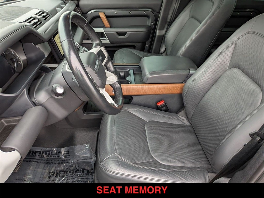 Gloss black Signature Graphic, Defender 110 SE, 4D Sport Utility, 3.0L I6, 8-Speed Automatic, 4WD, Ebony w/Grained Leather Seat Trim, Adaptive Cruise Control, Advanced Tow Assist, Apple CarPlay & Android Auto, Auto High-beam Headlights, Auto-dimming door mirrors, Auto-dimming Rear-View mirror, Automatic temperature control, Black Contrast Roof, Black Exposed Rear Recovery Eyes, Black Wheel Protection Pack, Body Colored Spare Wheel Cover, Brake assist, Cold Climate Pack, Comfort & Convenience Pack, Electrically Adjustable Steering Column, Electronic Stability Control, Emergency Pack, Extended Leather Upgrade, Exterior Parking Camera Rear, Exterior Protection Pack, Front Bucket Seats, Front fog lights, Fully automatic headlights, Garage door transmitter: HomeLink, Grained Leather Seat Trim, Headlight Power Wash, Heated front seats, Heated Steering Wheel, Heated Washer Jets, Heated Windscreen, Illuminated entry, Leather Shift Knob, Leather steering wheel, Low tire pressure warning, Matte Black Hood Decal, Navigation system: Connected Navigation PIVI Pro, Outside temperature display, Power moonroof, Premium Cabin Lighting, Premium Interior Protection & Storage Pack (5 Seat), Premium Upgrade Interior Pack, Rear anti-roll bar, Rear fog lights, Refrigerated Center Console, Remote keyless entry, Rough-Cut Walnut Veneer, Security system, Speed-sensing steering, Split folding rear seat, Steering wheel mounted audio controls, Tachometer, Tow Hitch Receiver, Towing Pack, Twin Front Cupholders w/Cover, Ventilated front seats, Wheels: 22 Gloss Black Finish Style 5098.