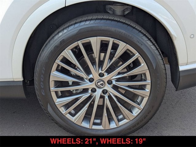 RX 350 Luxury, 4D Sport Utility, 2.4L I4 PDI Turbocharged DOHC 16V LEV3-SULEV30 275hp, 8-Speed Automatic, AWD, Eminent White Pearl, Black w/ Black Cascade Trim w/NuLuxe Seat Trim, 10-Way Power Driver & Fr Passenger Seat Adjusters, 12 Speakers, Advanced Park, Anti-whiplash front head restraints, Auto High-beam Headlights, Auto tilt-away steering wheel, Auto-dimming door mirrors, Auto-dimming Rear-View mirror, Automatic temperature control, Brake assist, Cold Area Package, Digital Key, Electronic Stability Control, Emergency communication system: Safety Connect (10-year trial), Exterior Parking Camera Rear, Finish Plate Door Inner Garnish, Front fog lights, Fully automatic headlights, Garage door transmitter: HomeLink, Genuine wood console insert, Head-Up Display (HUD), Heads-Up Display, Heated & Ventilated Front Bucket Seats, Heated steering wheel, Illuminated entry, Leather Shift Knob, Leather steering wheel, Low tire pressure warning, Luxury Package, Navigation System, Outside temperature display, Panorama Glass Roof, Panoramic View Monitor w/BSM, Parking Support Alert/Brake, Power Folding Rear Seats, Power Liftgate, Power Rear Door w/Kick Sensor, Premium Paint (PJ), Premium Triple-Beam LED Headlamps, Radio: Lexus Interface w/14" HD Touchscreen Display, Rear air conditioning, Remote keyless entry, Security system, Semi-Aniline/Synthetic Suede Leather Seat Trim, Spoiler, Steering wheel memory, Steering wheel mounted audio controls, Telescoping steering wheel, Traffic Jam Assist, Turn signal indicator mirrors, Wheels: 21", Wireless Apple CarPlay/Wireless Android Auto, Wireless Charger, Wood Steering Wheel w/Paddle & Heater.