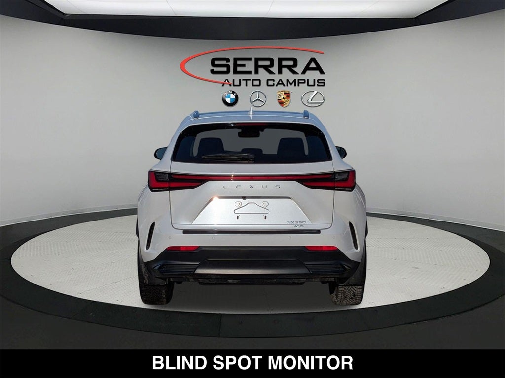 NX 350 Luxury, 4D Sport Utility, 2.4L I4 DOHC 16V, 8-Speed Automatic, AWD, Black Leather, 10 Speakers, AM/FM radio: SiriusXM, Auto Dynamic Headlamp Leveling, Auto High-beam Headlights, Auto tilt-away steering wheel, Auto-dimming door mirrors, Auto-dimming Rear-View mirror, Automatic temperature control, Brake assist, Cold Area Package, Digital Inner Mirror, Door Edge Film by 3M, Electronic Stability Control, Emergency communication system: Safety Connect (up to 10-year trial subscription included), Exterior Parking Camera Rear, Front fog lights, Fully automatic headlights, Garage door transmitter: HomeLink, Genuine wood door panel insert, Heads-Up Display, Heated & Ventilated Front Bucket Seats, Heated door mirrors, Illuminated Cargo Sill, Illuminated Door Sills, Illuminated entry, Leather Heated Steering Wheel w/Paddles, Leather Shift Knob, Leather steering wheel, Low tire pressure warning, Luxury Package, Navigation system: Drive Connect Cloud Navigation (3-year trial subscription included), Outside temperature display, Panoramic Slide Moonroof/Sunroof, Power Liftgate, Premium Paint (PJ), Quick Charge Cables-Mobile, Radio data system, Rear window wiper, Remote keyless entry, Security system, Smart Phone Convenience Package, Speed-sensing steering, Speed-Sensitive Wipers, Split folding rear seat, Spoiler, Steering wheel memory, Steering wheel mounted audio controls, Telescoping steering wheel, Triple Beam Headlamps, Turn signal indicator mirrors, Wheels: 20 Gray Metallic, Wiper & Window Deicer, Wireless Apple CarPlay/Wireless Android Auto.