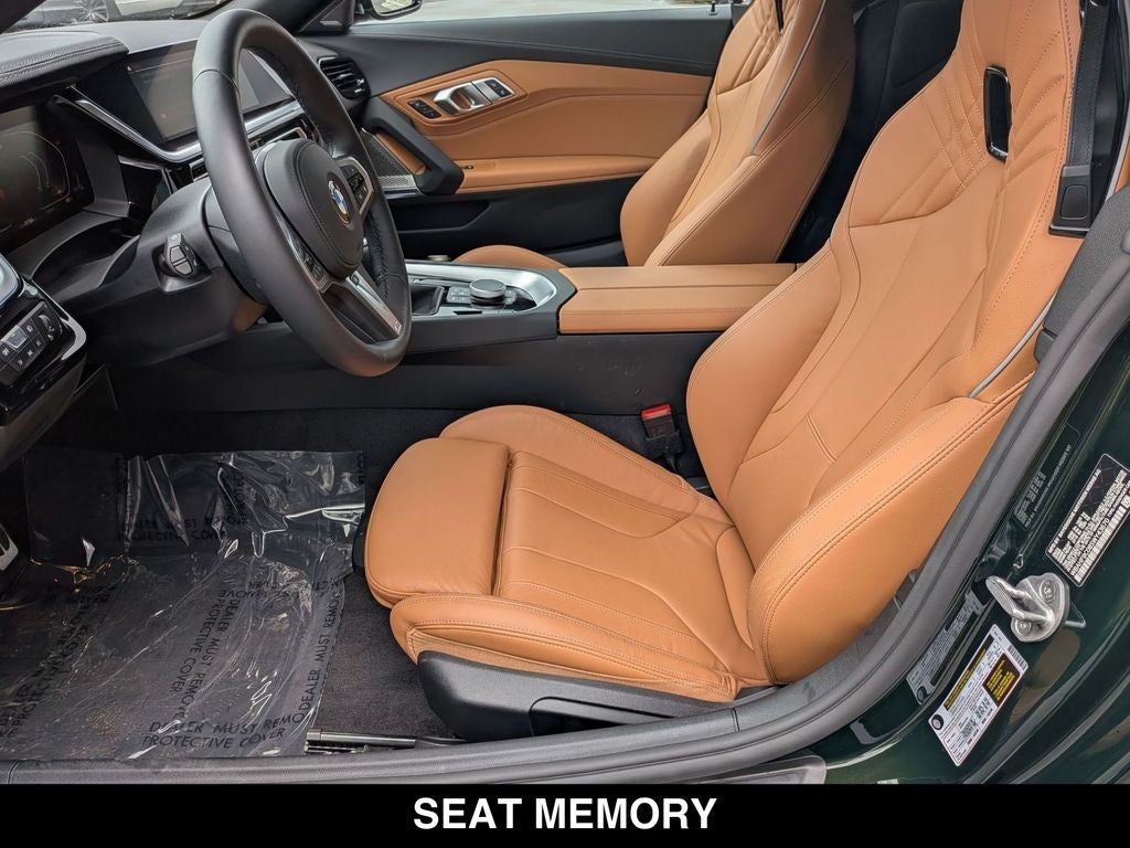 Z4 sDrive M40i, 2D Convertible, 3.0L I6, Manual, RWD, San Remo Green Metallic, Cognac W/Contrast Stitch Leather, 10 Speakers, Active Blind Spot Detection, Active Driving Assistant, Adaptive Full LED Lights, Adaptive suspension, Ambient Lighting, Apple CarPlay & Android Auto Compatibility, Auto High-beam Headlights, Auto-dimming door mirrors, Auto-dimming Rear-View mirror, Automatic temperature control, Black High Gloss Trim, Black Mirror Caps, BMW TeleServices, Brake assist, Child-Seat-Sensing Airbag, Connected Package Pro, Convertible roof lining, Driving Assistance Package, Edition, Electronic Stability Control, Emergency communication system: BMW Assist eCall, Enhanced USB/Bluetooth® Plus Smartphone Integration, Extended Shadowline Trim, Exterior Parking Camera Rear, Front Bucket Seats, Fully automatic headlights, Garage door transmitter, Handschalter Package, harman/kardon Surround Sound System, Head-Up Display, Heated door mirrors, Heated Front Seats, Heated steering wheel, Illuminated entry, Integrated roll-over protection, Lane Departure Warning System, Leather steering wheel, Live Cockpit Pro w/Navi, Lumbar Support, M Sport Brakes w/Red Calipers, M Sport Front Seats, Memory seat, Navigation System, Outside temperature display, Overhead console, Parking Assistant, Power Front Seats, Premium Package, Remote keyless entry, Security system, SensaTec Seat Upholstery, Shadowline Package, SiriusXM w/360L & 1 Year Platinum Plan Subscription, Speed-sensing steering, Steering wheel mounted audio controls, Telescoping steering wheel, Turn signal indicator mirrors, Vernasca Leather Seat Upholstery, Wheels: 19 x 9 Fr & 20 x 10 Rr M Dual-Spoke, Wireless Charging.