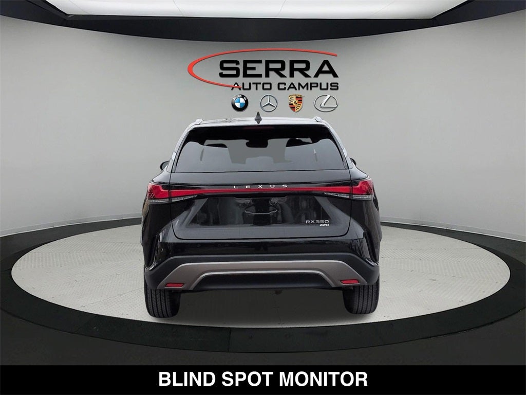 RX 350 Premium, 4D Sport Utility, 2.4L I4 Turbo, 8-Speed Automatic, AWD, Black Nuluxe Black Op Artificial Leather, 12 Speakers, 19 5-Spoke Alloy Wheels, 8-Way Power Driver & Front Passenger Seat Adjusters, Accessory Package, All-Weather Cargo Tray, All-Weather Floor Liners, Anti-whiplash front head restraints, Auto High-beam Headlights, Auto tilt-away steering wheel, Auto-dimming door mirrors, Auto-dimming Rear-View mirror, Automatic temperature control, Brake assist, Convenience Package, Door Edge Film by 3M, Electrochromic Heated Outside Rearview Mirror, Electronic Stability Control, Emergency communication system: Safety Connect (10-year trial), Exterior Parking Camera Rear, Front fog lights, Fully automatic headlights, Garage door transmitter: HomeLink, Heated & Ventilated Front Bucket Seats, Heated door mirrors, Illuminated Door Sills, Illuminated entry, Lane Change Assist w/Lane Keeping Assist System, Leather Shift Knob, Leather steering wheel, Low tire pressure warning, Navigation System, Outside temperature display, Power Liftgate, Power moonroof, Premium Package, Radio: Lexus Interface w/14 HD Touchscreen Display, Rain sensing wipers, Rear air conditioning, Rear window wiper, Remote keyless entry, Security system, Side Puddle Lamp, Spoiler, Steering wheel memory, Steering wheel mounted audio controls, Turn signal indicator mirrors, Ventilated front seats, Wireless Apple CarPlay/Wireless Android Auto.