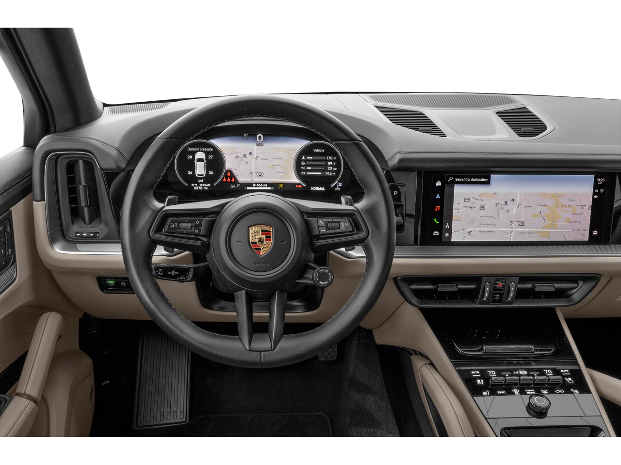 4D Sport Utility, 3.0L V6, 8-Speed Automatic with Tiptronic, AWD, Quartzite Grey Metallic, Black w/Leather Seat Trim w/Leather Interior, 14-Way Power Seats w/Comfort Memory, 4-Zone Climate Control, Adaptive Air Suspension w/PASM, Adaptive Cruise Control w/Lane Keep Assist (LKA), Apple CarPlay & Android Auto, Artificial Leather Seat Trim, Auto-dimming door mirrors, BOSE Surround Sound System, Brake assist, Electronic Stability Control, Exterior Parking Camera Rear, Front Ventilated Seats, Fully automatic headlights, HD-Matrix Design LED Headlights, Heated front seats, Heated GT Sport Steering Wheel in Leather, Leather steering wheel, Low tire pressure warning, Navigation System, Outside temperature display, Panoramic Roof System, Power Liftgate, Premium Package Plus, Rear Heated Seats, Security system, Spoiler, Sport Tailpipes in Dark Bronze, SportDesign Package in High Gloss Black, Turn signal indicator mirrors, Voltmeter, Wheels: 21" RS Spyder Design in Vesuvius Grey.