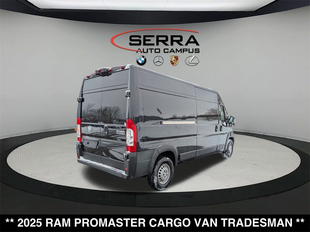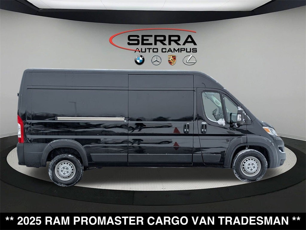 Welcome to the Serra Auto Campus, whether you are looking for a new or pre-owned BMW, Mercedes-Benz or Porsche car, or SUV you will find it here. We have helped many customers from Alma, Ann Arbor, Charlotte, East Lansing, Eaton Rapids, Flint, Grand Blanc, Fenton, Holt, Howell, Jackson, Lansing, Mason, Okemos, Owosso, Mt. Pleasant, Saginaw, Midland, Jackson and Kalamazoo find the BMW, Mercedes-Benz or Porsche of their dreams! Priced below KBB Fair Purchase Price! Odometer is 4017 miles below market average! Black Clearcoat 2025 Ram ProMaster 2500 3D Cargo Van High Roof FWD 9-Speed 948TE Automatic 3.6L V6 24V VVT